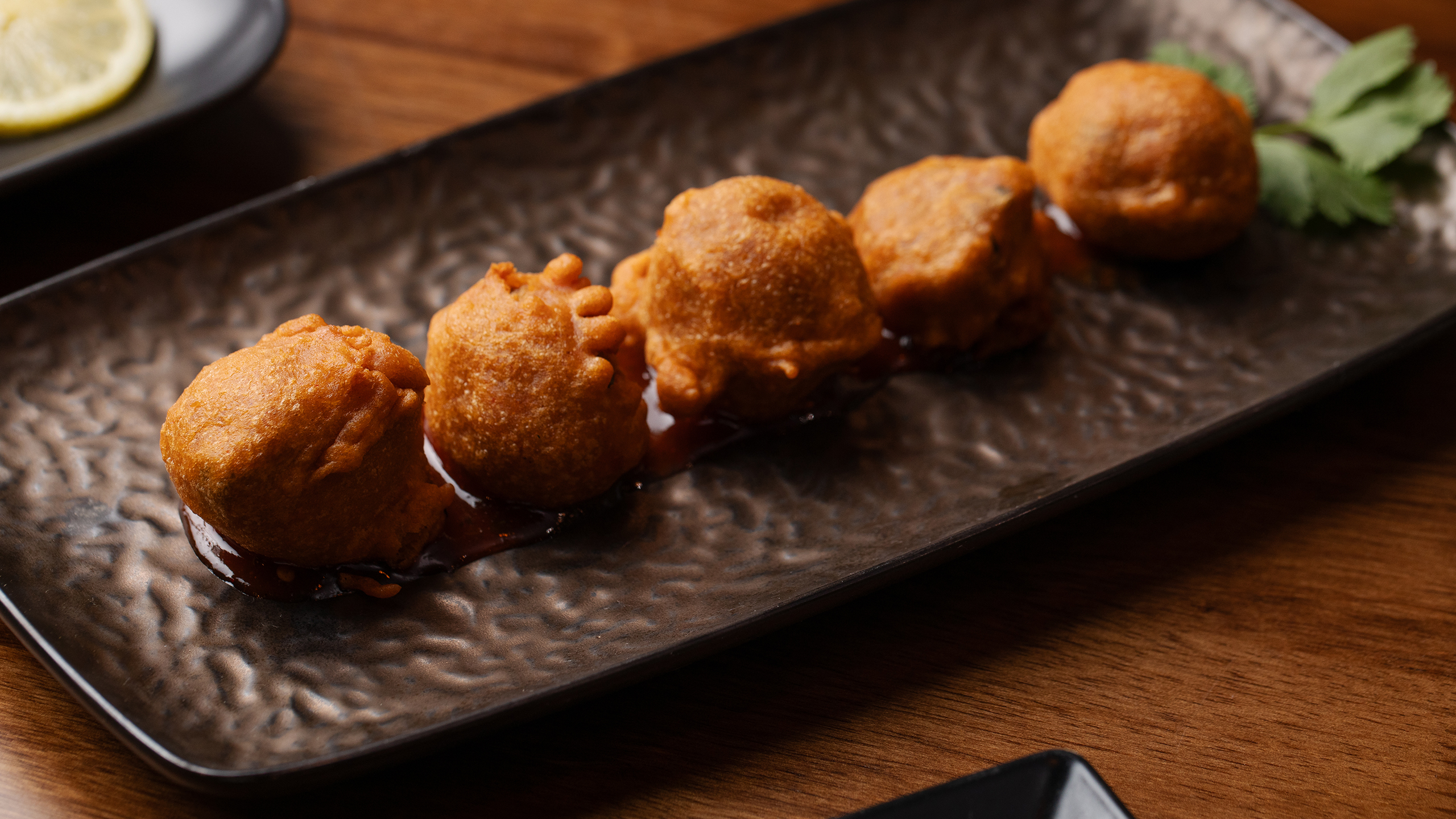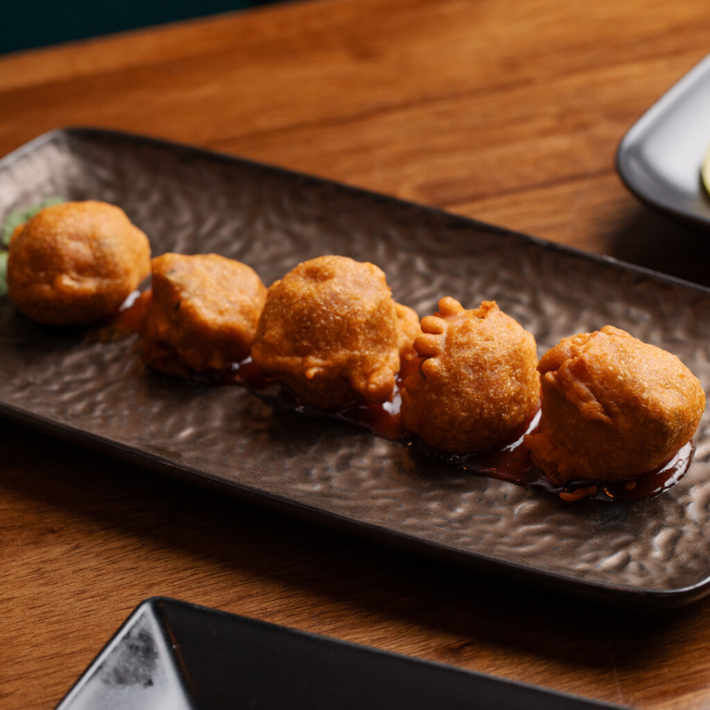 Potato Bonda is available as part of our vegan-friendly menu at Madurai, alongside dosas, curries, and small plates inspired by South India.