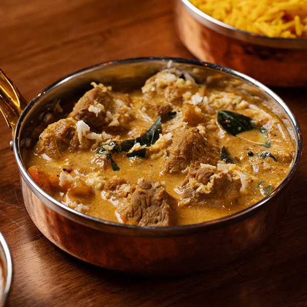 Mappas is one of those dishes that surprises people who come in expecting heat and fire. It is not that kind of curry. It is a Malabar Coast dish built around the first press of coconut milk — thick, ivory-white, gently sweet — with a handful of whole aromatic spices that perfume the gravy rather than dominate it. The lamb sits in this silky sauce, soft and yielding, picking up the fragrance of clove, fennel and black pepper that drift through the background. It is one of the most elegant things to come out of a South Indian kitchen.